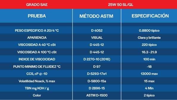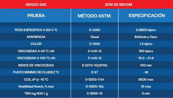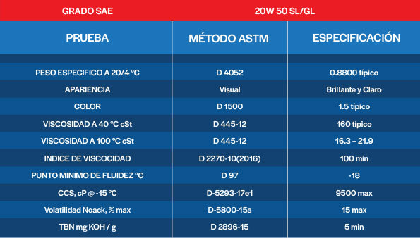 Aceite elaborado de básicos parafínicos de la más alta calidad y un paquete de aditivos dispersantes, detergentes, inhibidores de oxidación, antidesgaste y antiespumante.