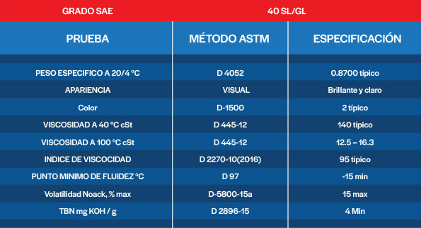 • El paquete de aditivos correctamente balanceados proporcionan una mejor estabilidad para prevención del desgaste.