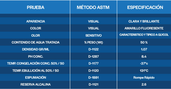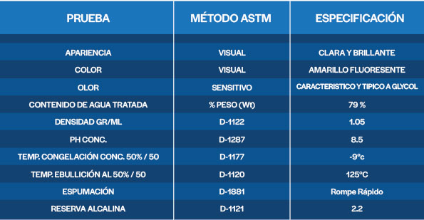 • Fácil rompimiento de la espumación, previniendo ocurra la cavitación en el sistema de refrigeración.